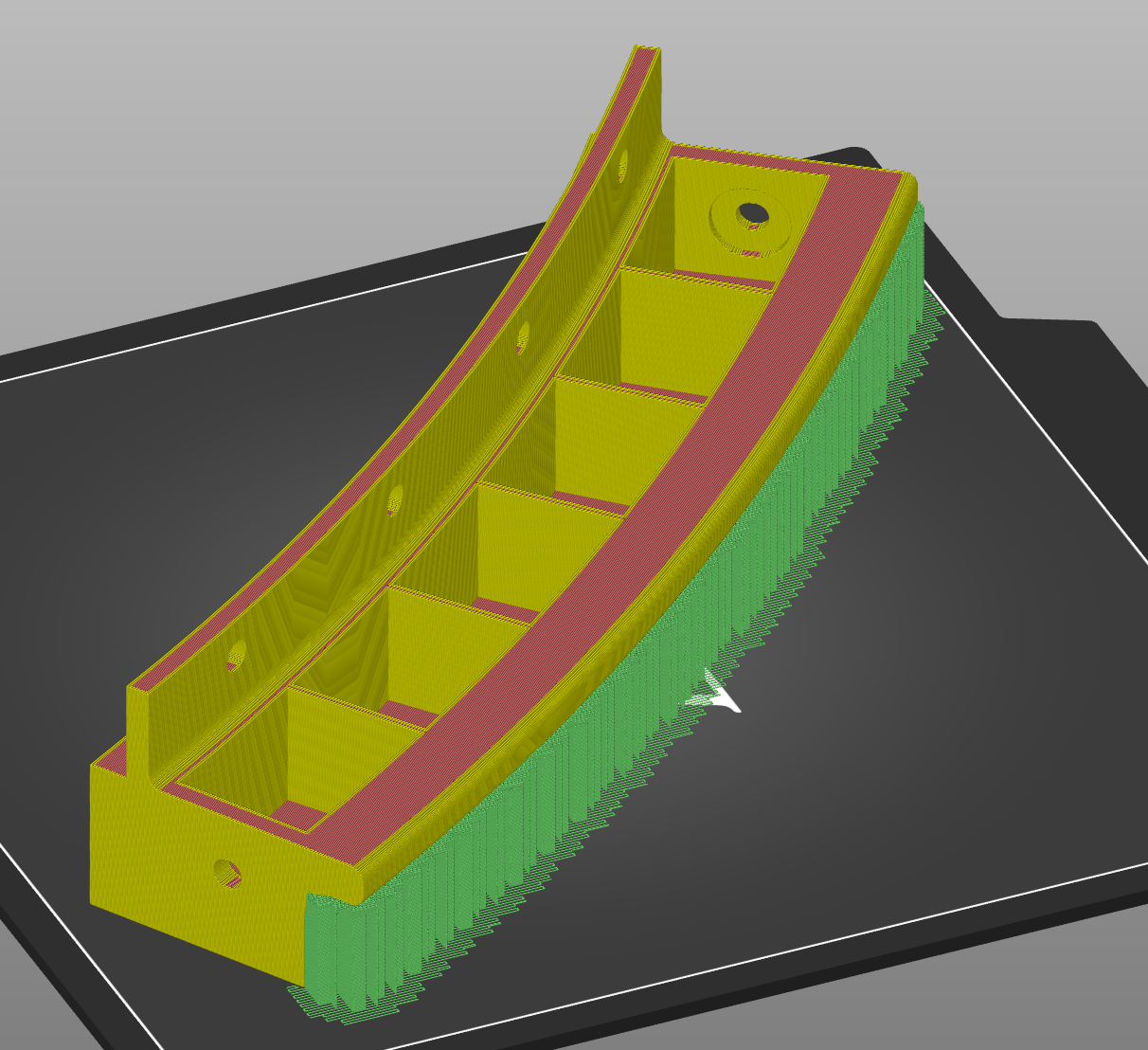 Rails - Print them with the large flat surface on the build plate. The overhang needs supports. I had to gently sand where the supports were after my wheel was assembled but I’m sure there are better support settings than what I used.